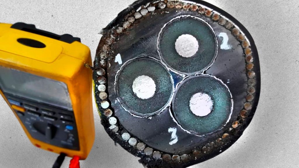 Análisis morfológico superficial utilizando la técnica de Microscopía Electrónica de Barrido (MEB) a muestras de cable sublacustre, compuesto por 3 cables cada uno con 20 torones para un total de 60 alambres.